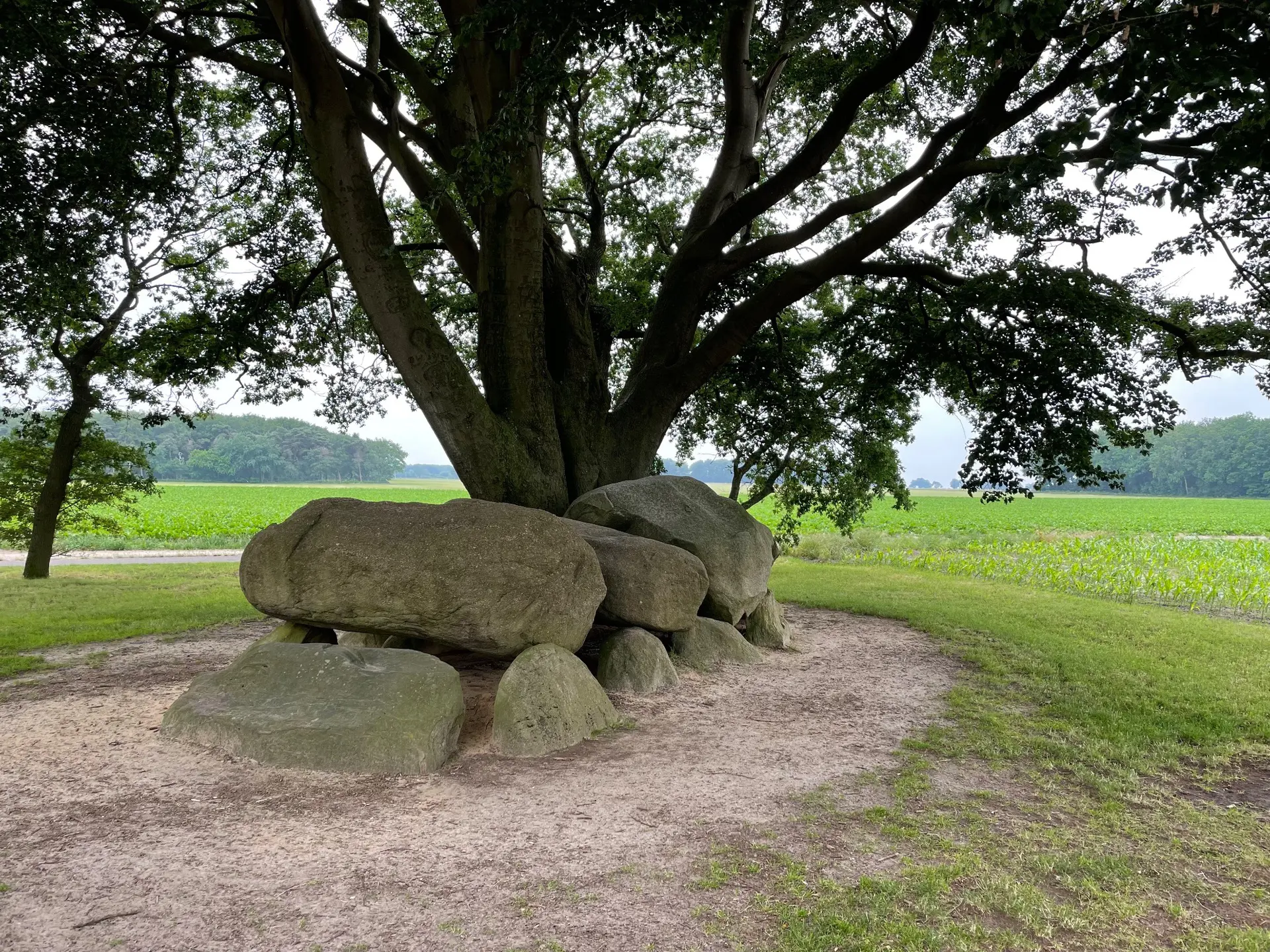 Deze route is een ruime 7,5 km lang en leidt je door een afwisselend landschap langs verschillende hunebedden. Ideaal om door het lopen en het voelen van de hunebedden, te genieten, je 'binnen-tempo' te vertragen en -wie weet- allerlei inzichten op te doen. Je kunt tijdens je wandeling ook een vraag centraal stellen. Wie weet waar je uitkomt!